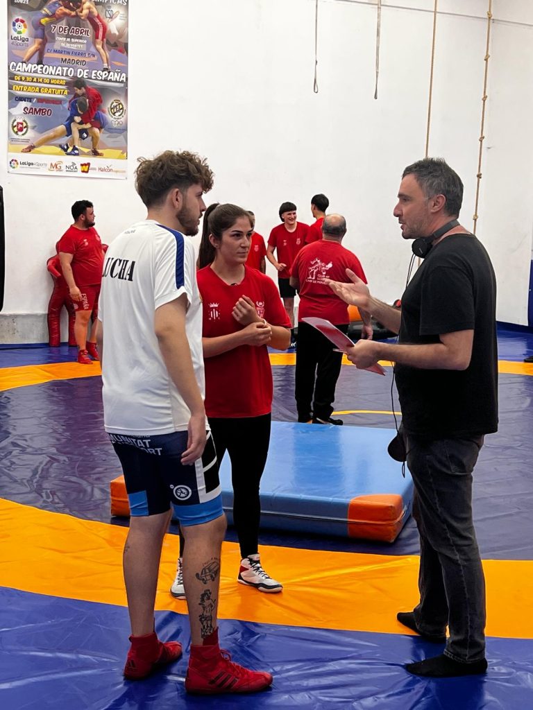 – Al luchador que bloquea al rival que está de espaldas al tapiz.