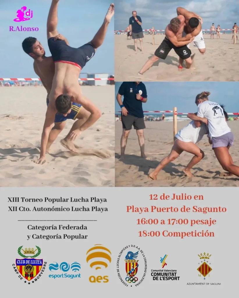 Pero la temporada no ha terminado todavía, ya que el Club de Lluita Camp de Morvedre organiza este fin de semana del 12 y 13 de julio, por delegación de la Federación Valenciana de Lucha, y en la Playa del Puerto de Sagunto, junto a la plaza La Concordia, el XII Campeonato de la Comunidad Valenciana de Lucha Playa, el II de Sambo Playa, y el III Open de la Comunidad Valenciana, así como el XIII Torneo Popular de Lucha Playa “Playa Puerto de Sagunto”, torneo decano de esta modalidad en España.